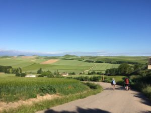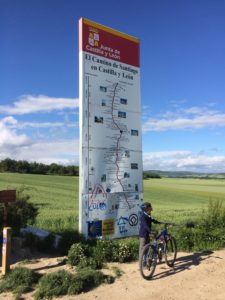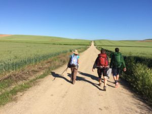 Today’s path took us through rolling hills covered with wheat fields as far as the eye could see. Most of the walk was on dirt and gravel roads along side a busy highway – not the more natural environment we enjoyed a few days ago. We stopped in Villamayor del Rio for lunch and enjoyed spending time with our Camino friends from New Zealand, 7-year old Dayton and his grandmother Gerry. We’re pretty tired tonight and will have a pilgrim dinner in the albergue where we are staying.