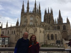 After being greeted by a gorgeous sunrise it started to rain, and it rained most of the day. The cold and rain were so miserable that even Isabella’s optimism was challenged. We passed a pen of sheep who did not seem nearly as happy as the sheep we saw in the Pyrenees. We passed Atapuerca where what are considered to be the earliest human remains ever discovered in Europe were found. We finally made it to the edge of Burgos, the largest city we’ve encountered so far. We still had several kilometers to go to get to the center of the old city and to our albergue. The Catedral de Santa Maria, reputed to be one of Spain’s most beautiful, is nearby.