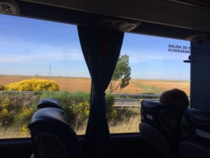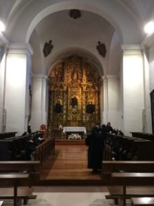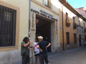 Several days ago I got what I thought was a cramp or a muscle pull in the arch of my left foot. I tried walking through it, but could not get it to go away. I was able to put up with it by favoring that foot until the last few kilometers of yesterday’s walk when the pain got really severe. There was no way I would be able to walk any distance today. This morning we took an ALSA bus to León, the equivalent of two days of walking. The view from the bus confirmed that the terrain in this area is very flat with mountains along the horizon to our right (north). We went through Mansilla where there is a historic bridge only wide enough for a single lane, so there is a traffic light to let vehicles over, first one way then the other. How different from the U.S. – we would tear down the old bridge and replace it with a nice wide one so no one would have to wait. From the León bus station we headed toward the central part of the city and got directions to an urgent care clinic. The doctor diagnosed my condition as planter fascitis and prescribed an anti-inflammatory (stronger than ibuprofen). I was told that I cannot continue walking 20 to 25 km a day, but have to cut back to no more than 10 per day. We decided to take a train in the morning to Sarria to give us more than 12 days to walk the final 100 km to officially complete the Camino and earn the Compostela (certificate of completion of the pilgrimage to Santiago). Needless to say, this is not the way we planned or expected things to go, but all we can do at this point is to make the best of things. After checking in at the Santa Maria de Carbajal albergue we attended evening vespers and mass with the Benedictine nuns and received the pilgrim blessing. I am giving thanks that I am not having to give up the Camino and should be able to complete it.