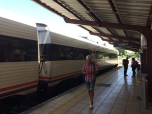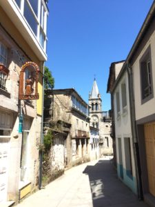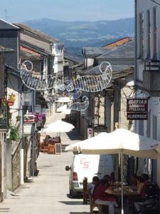 Up at 5:00 a.m. and out at 5:50. My dependable navigator, Isabella, got us to the ‘renfe’ train station in plenty of time for a quick breakfast and a bit of texting before boarding our 7:05 train. My foot is amazingly better after a day of not hiking and a couple of doses of good drugs. The train ride from León to Monforte de Lemos was absolutely gorgeous, into the mountains with lots of beautiful views and many, many tunnels. During our wait for the connecting train to Sarria, my dependable translator, Isabella, handled ordering lunch for us at a nearby bar. We arrived in Sarria in the early afternoon and registered in a really nice little albergue that feels like somebody’s historic home. After walking probably 2 or 3 kilometers today my foot feels wonderful, not perfect, but wonderful. I am so excited to be “restarting” the Camino in the morning.