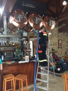 When we stopped at a village bar for our second breakfast this morning, I noticed something I had seen in a couple of other bars, a set of stainless steel containers suspended from the ceiling. This time I found out what they are – tanks for storing beer. In the States we are used to beer being supplied in small kegs. In this case the beer is delivered in a bulk truck and pumped into the overhead tanks. Spain has a reputation for taking its wine seriously – it is also obvious that they take their beer quite seriously as well.