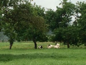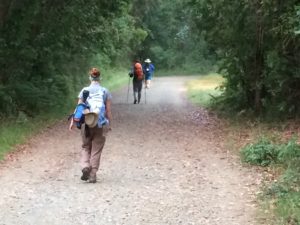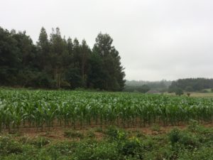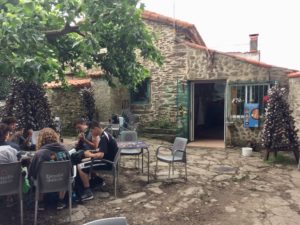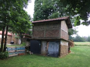 Today was another cool, humid, hazy Galician day on the Camino. You can feel that we are getting closer to Santiago – there are more pilgrims on the road, there are more bars and roadside stands along the way, and there is a noticeable air of anticipation. We passed by more cows, corn fields, eucalyptus groves, corn cribs, open fields, and tiny villages. I noticed, for the first time, buds on the grapevines. After what seemed like no time at all we arrived at our albergue. Only 3 days and about 30 kilometers to Santiago. It’s a little hard to believe.