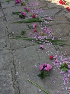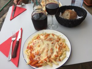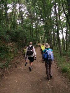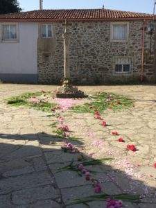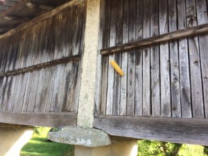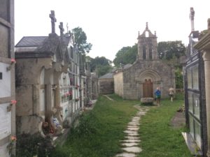 Today was another cool, humid, hazy Galician day on the Camino. You can feel that we are getting closer to Santiago – there are more pilgrims on the road, there are more bars and roadside stands along the way, and there is a noticeable air of anticipation. We passed by more cows, corn fields, eucalyptus groves, corn cribs, open fields, and tiny villages. I noticed, for the first time, buds on the grapevines. After what seemed like no time at all we arrived at our albergue. Only 3 days and about 30 kilometers to Santiago. It’s a little hard to believe.